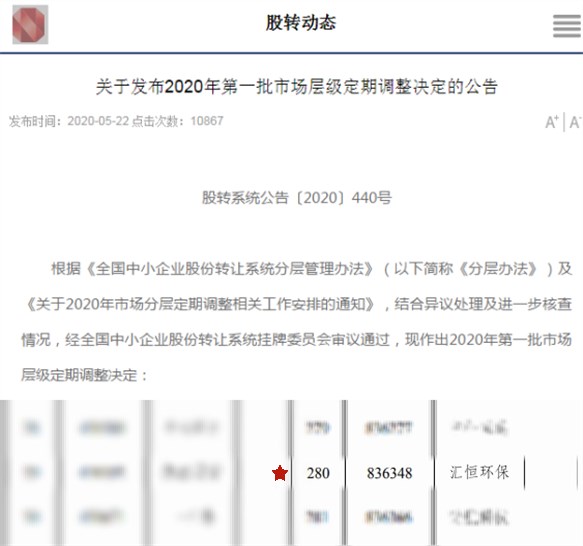 2020年匯恒環(huán)保進入創(chuàng)新層